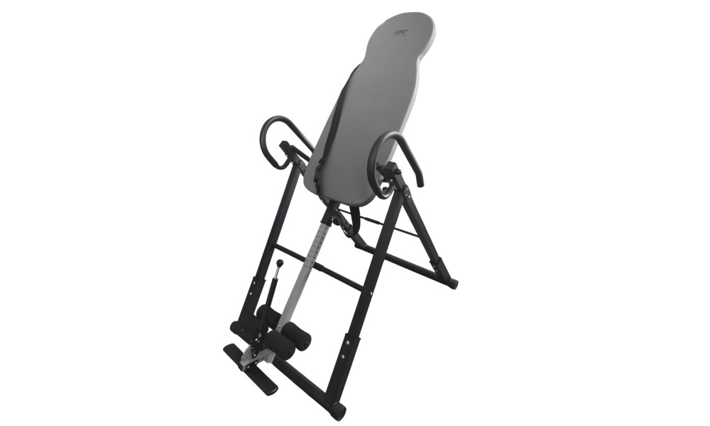 Инверсионный стол DFC IT6320A/2 — это удобный и эффективный тренажёр для улучшения осанки, укрепления связок и улучшения кровообращения. Спинка серого цвета размером 104,5х45 см и толщиной 4 см. Страховочный ремень входит в комплект, двойные валики для удобства использования регулируются на 4 уровня. Максимальный вес пользователя составляет 150 кг. Ограничитель угла наклона в виде перекладины позволяет регулировать угол наклона в трёх положениях на 20, 40 и 60°, либо на 180°, если убрать перекладину. Складная конструкция стола облегчает хранение и транспортировку.