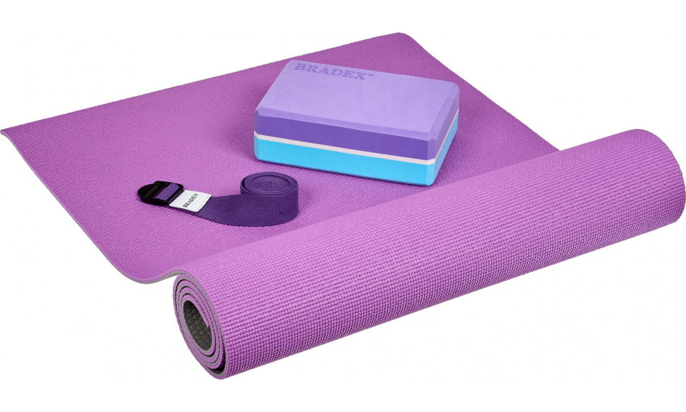 Коврик для йоги и фитнеса Bradex SF 0688, 183*61*0,6 см, двухслойный фиолетовый/серый