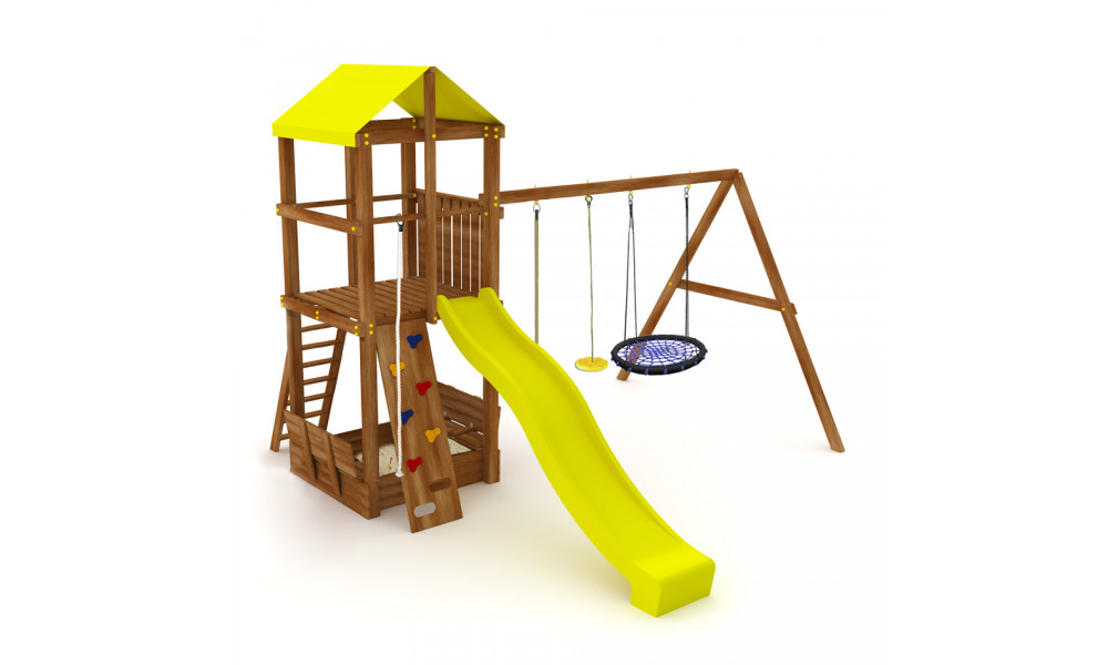 Спортивно-игровой комплекс Kampfer Game Castle (№2 Ореховый горка желтая и синее гнездо и желтая лиана)
